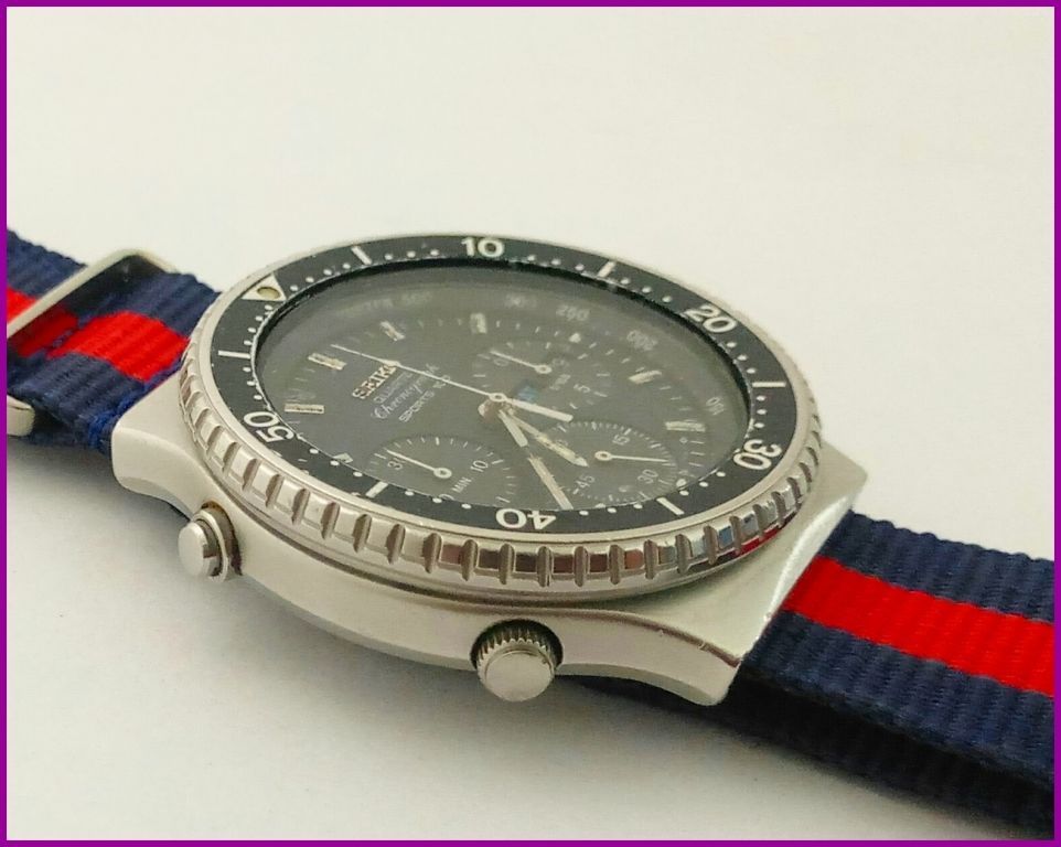 Welcome. I'm happy let you peek to the small portion of my personal watches collection. Here & Now I present to you: Brand: Seiko Model: Sports 100 Quartz Chronograph Ref.# 7A38-7070 Age: 1984 FEATURES: - Day/Date - Chronograph - Rotating Bezel - TECHNICAL DATA: Mineral Crystal - Seiko Signed Stainlees Steel Case & Case Back - Seiko Original Black Dial Ref.# 709LT - Seiko Steel Crown & Pushers - 41mm Case Diameter (excluding crown & pushers) - Quality Seiko Japan Signed Quartz 15J Chronograph Day/Date Movement Cal. 7A38 - Nylon 20mm Blue/Red NATO Strap - !Water Resistance NOT Tested! - Recently Fully Serviced - All Function Works Properly - Please See Photos - //////////////////////////////////////////////////////////////////////////////////////////////////////////////////////////////////////////////////////////////////////////////////////////////////////// Payment via PayPal Only. I'll ship within 1 business day via EMS with a tracking number & insurance. Shipping cost - $29.99 USD - WORLDWIDE! \\\\\\\\\\\\\\\\\\\\\\\\\\\\\\\\\\\\\\\\\\\\\\\\\\\\\\\\\\\\\\\\\\\\\\\\\\\\\\\\\\\\\\\\\\\\\\\\\\\\\\\\\\\\\\\\\\\\\\\\\\\\\\\\\\\\\\\\\\\\\\\\\\\\\\\\\\\\\\\\\\ | |