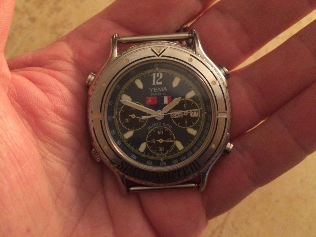 Those of you reading the title of this topic and thinking to yourselves 'Oh No - not another Yema Spationaute III thread' Look away now ! In my various scribblings on this forum (and others) I've made it abundantly clear that the 43mm Yema Spationaute III However, it transpires I may have been labouring under a delusion about their true significance and indeed supposed rarity. If you've read through my lengthy ramblings in the What became of Jean-Loup Chretien's Yema Spationaute III ? thread .... you'll already know some of the background, but to briefly recap, here's a couple of partial copy and pastes from the first page: I'd been lucky enough to pick up such a dial on eBay France in November 2009, with a few loose hands and a crown for only 5 Euros: