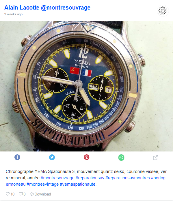 Googling images on Yema Spationaute III, as I do from time to time, yesterday evening I spotted another 'Cadran Drapeaux' recently posted in an Instagram feed. https://www.pictosee.com/p/2145152671338482584_13024344289