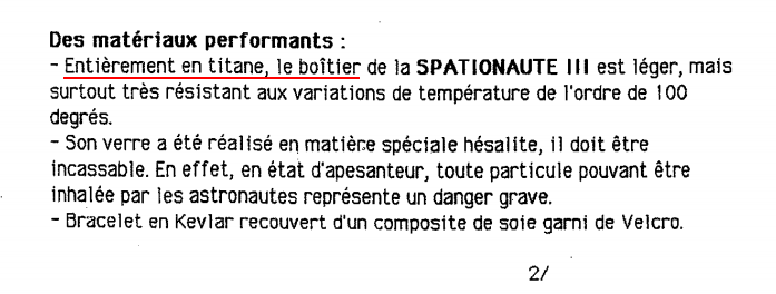 Once again, the 'mythical' Titanium watch case rears it's head - which thanks to Jean-Loup Chrétien's reply (Stainless Steel), we know never came to fruition - not even the 'prototype' Aragatz mission space-flown versions, let alone made it to production. The Clarification, at last, in the topic title ?