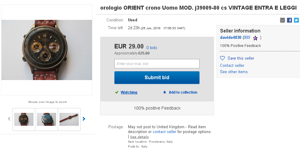So you can imagine my surprise when this J39009-80 popped up in my eBay saved favourite search notifications 3 weekends ago (on Sunday 21st January), listed by an Italian eBay seller, as a one-day auction with an opening bid price of 29 Euros ! http://www.ebay.co.uk/itm/391965923184