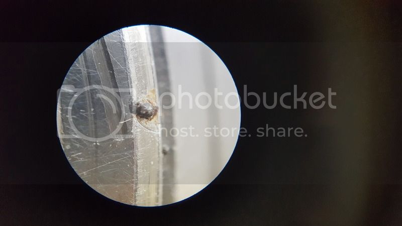 I purchased this a few days ago and it was declared as a no-go. I was relieved to find a quite clean movement though one coil was open circuit. Tedious, as it was for the second time in a month, one of the big ones where my last purchase batch is down to two small ones. It seems that lot may be the last new ones I can lay hands on as I recal I had to have them sent to the US from the UK four years or so back. This fault may be linked to an oddity on the case. It was some time before I poked at a tiny blob on the back's edge. It didn't budge. I used one of my micro chisels made from a large sewing needle. It still didn't budge. Drag out the old Watson Scientific microscope. The two blobs, one about the volume of a large grain of sand, were near a gouge mark that was counter-intuitive. i.e. as though someone slipped doing it up! It may juat be coincidental. The connection between all this is the notion that someone may have taken extraordinary measures to open the case - perhaps using electrical power to induce heat. I then wondered if the coil had induced current that fused it inside, as the usual damage was not evident. I imagine the circuit will be history if that's the case. There is one other scenario that I can think of. The metal has some impurities that have rusted, but the blob just seems too hard to be rust. I'm at a loss. Despite being small, the blob would I'm sure irritate one's skin fairly quickly. Any thoughts?