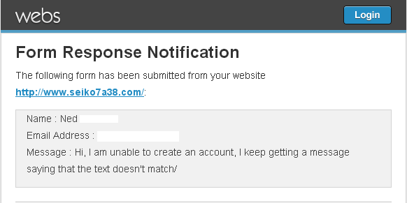 Hmm. Interesting. Out of curiosity, I thought I'd try creating a new member myself. It's been a while. To my surprise, I found that the Sign Up form wasn't actually asking potential new members to complete a Captcha challenge (in the usual sense, by matching words or numbers) - simply to click on an 'I'm not a Robot' checkbox. But even that doesn't work !! http://www.seiko7a38.com/apps/auth/signup?error=badcaptcha