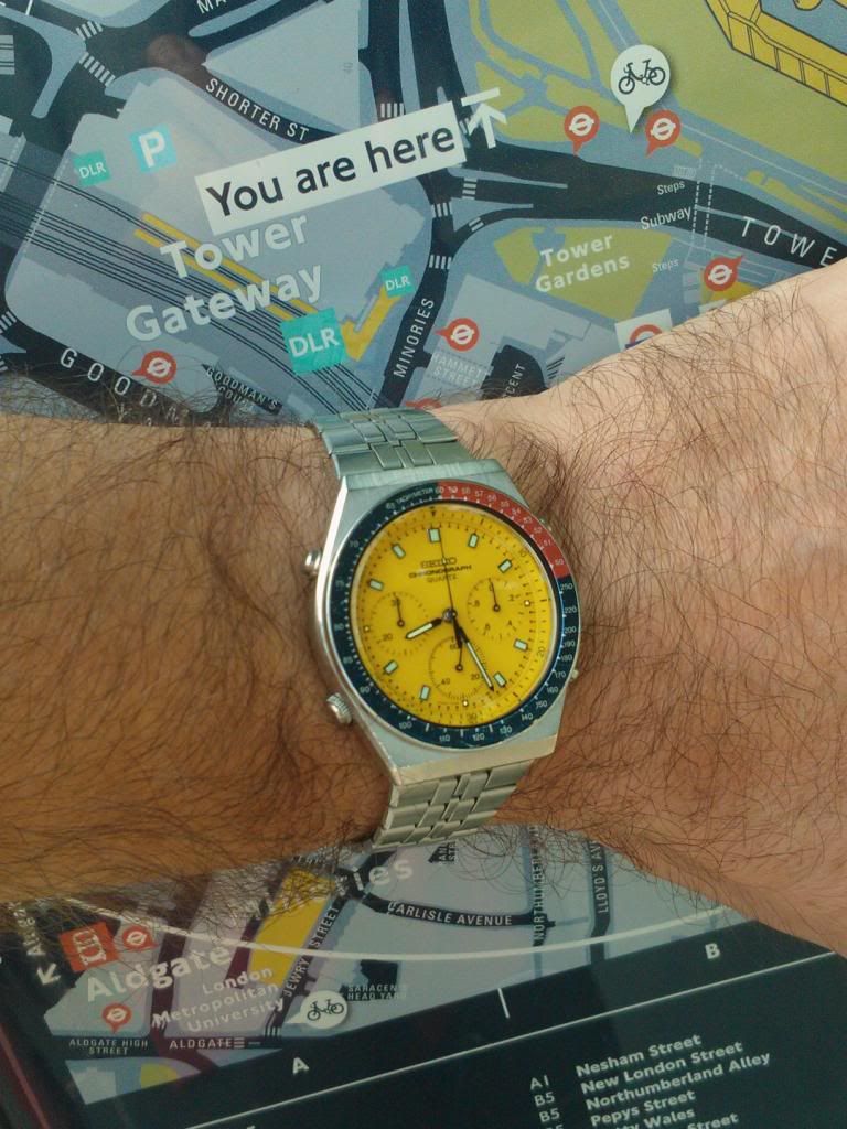 this is my 7A28-710A but with a bezel from a 7A28-7030. The original was very faded and battered and I think the red and blue works really well with the yellow dial. Here's the original: