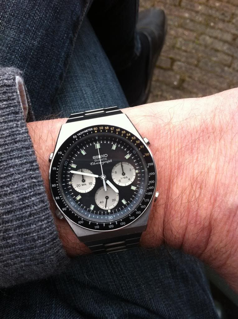 A little something bright for another perfect spring day. A rather common 7A28-7029 on a Seiko calf strap with gold Seiko buckle. About as "Bling" as I can go I'm afraid. Paul in Vegas.
