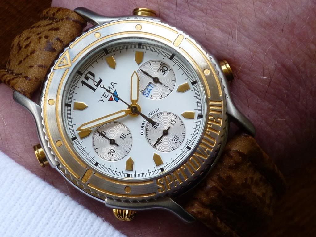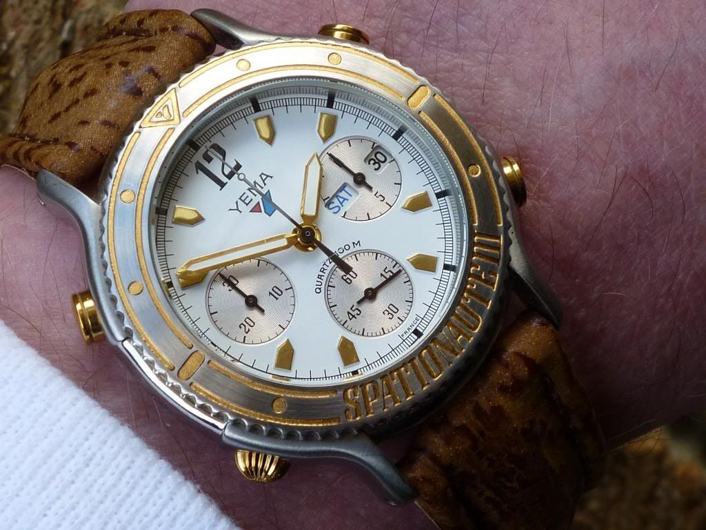 This afternoon, another from my Yema / C.G.H. collection box that I was working my way through, yesterday - and another favourite. My Yema Spationaute III 38mm 'Reduced', model # N80A696 (on original Yema golden brown shark strap).