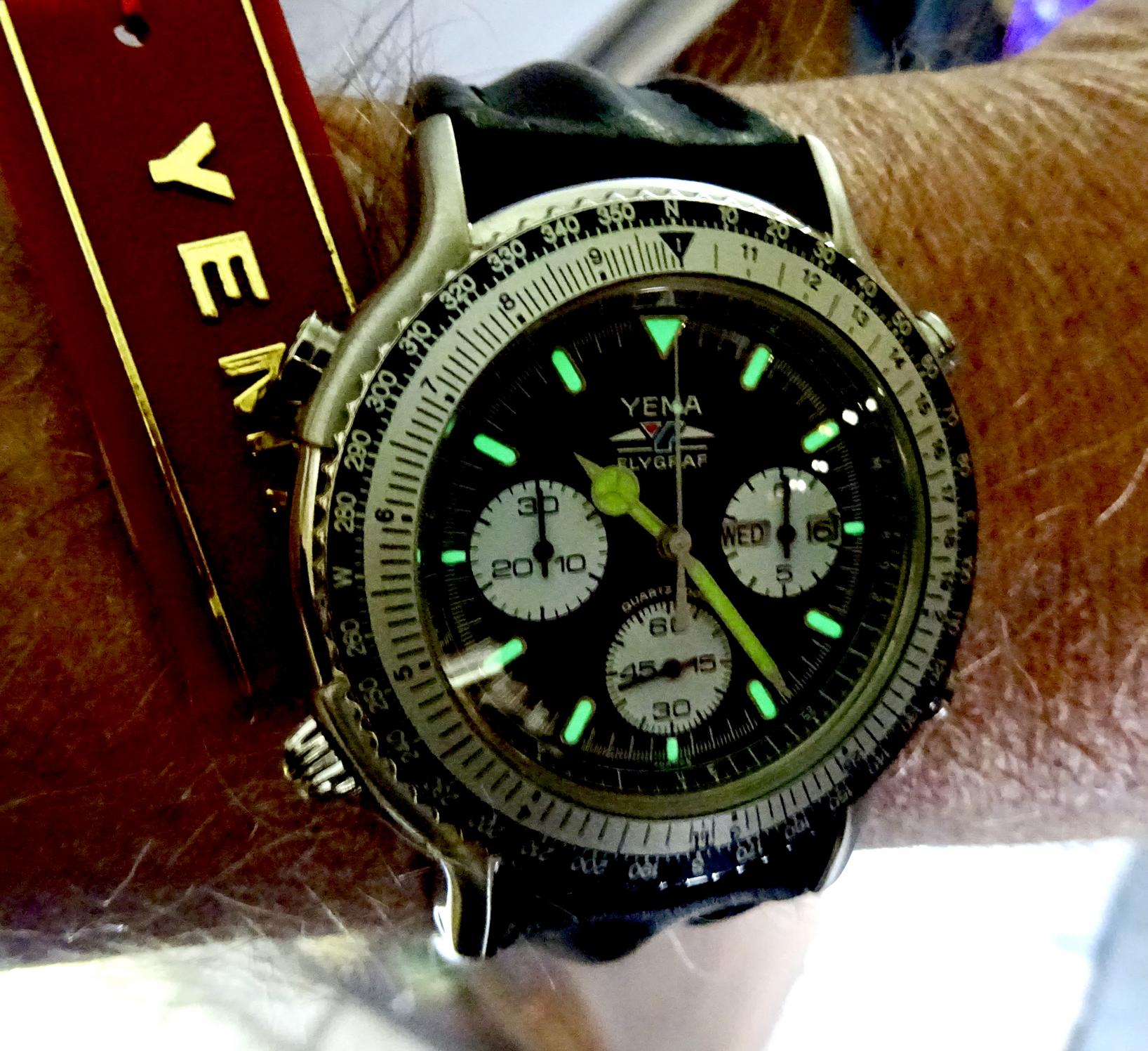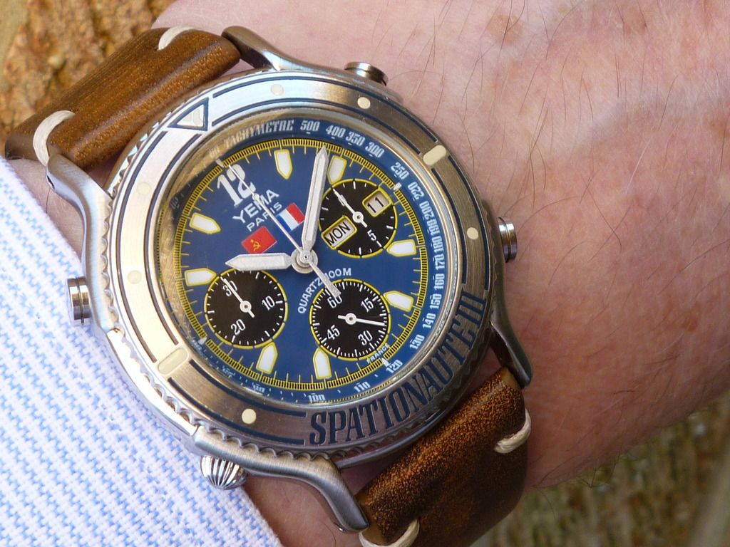 In case you hadn't noticed, I'm in catch-up mode, after a couple of days offline. This arrived on Monday morning, courtesy of my ever-obliging Stateside shipping agent - Paul 'PHK' in Las Vegas, who on this occasion certainly went 'the extra mile' (and then some), to acquire this for me. Yet another Yema Spationaute III Aragatz, but with the rare 'Mission Flags' dial, which I'd never expected to find on the wrong side of 'The Pond' (because of that 'Commie' flag on the dial.