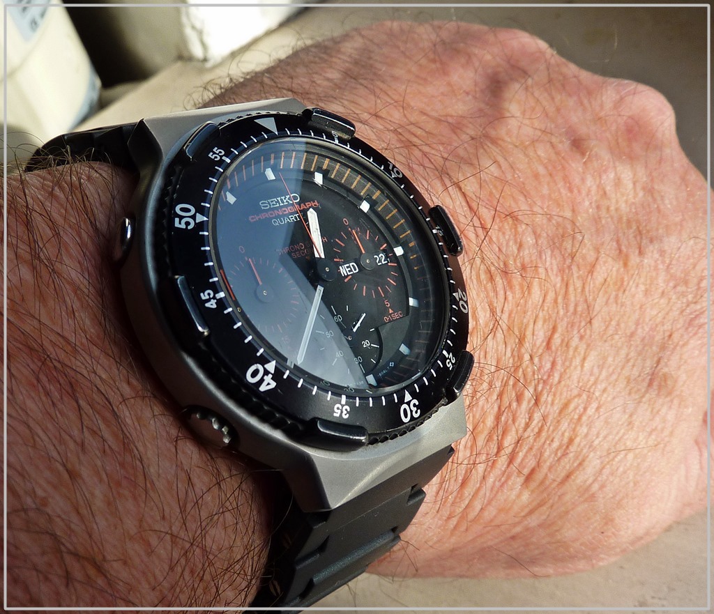 Wearing my most recently acquired stainless 7A38-7020 again today, which has now joined the ranks of my everyday wearers. I wore it to work last week and caught the corner of the watch case on a door handle, adding to the small ding that was already on the bottom R.H. corner of the watch case.
