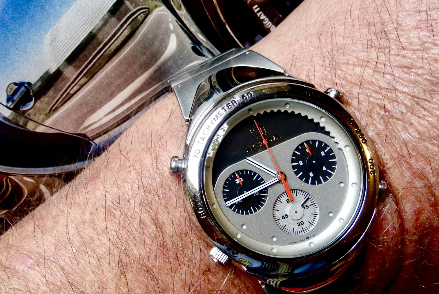 This afternoon, I'm wearing a 7A38 that I needn't ever worry about graunching - my 'beater' 7A38-6060 on a Yema 18mm 'Double Jonc' ribbed strap.