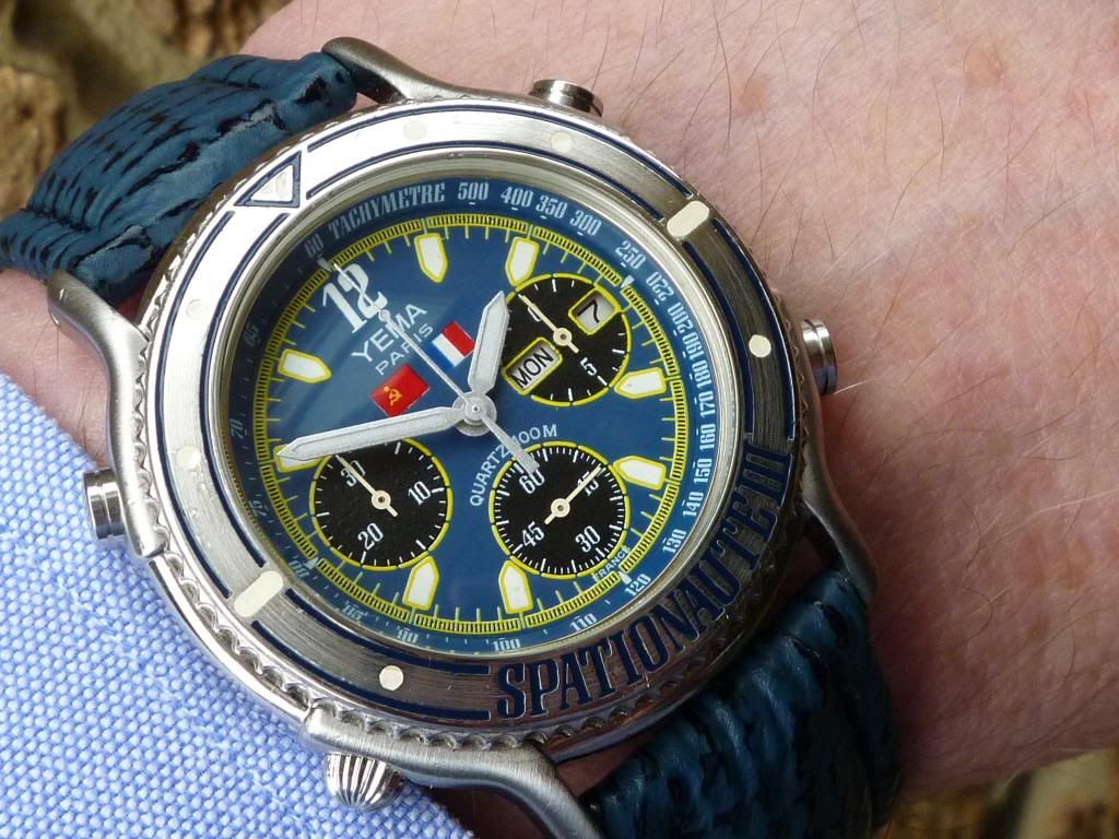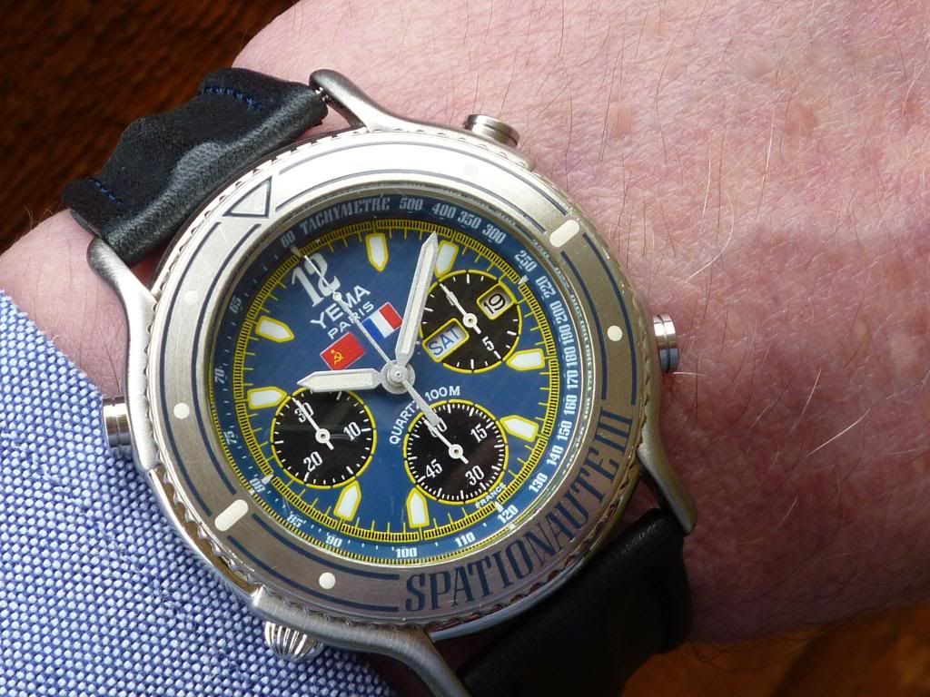Wearing my recently acquired relatively bargain priced Yema Spationaute III Aragatz, with Mission Flags dial, again this morning.