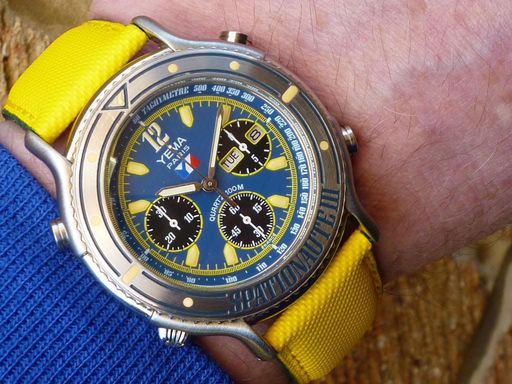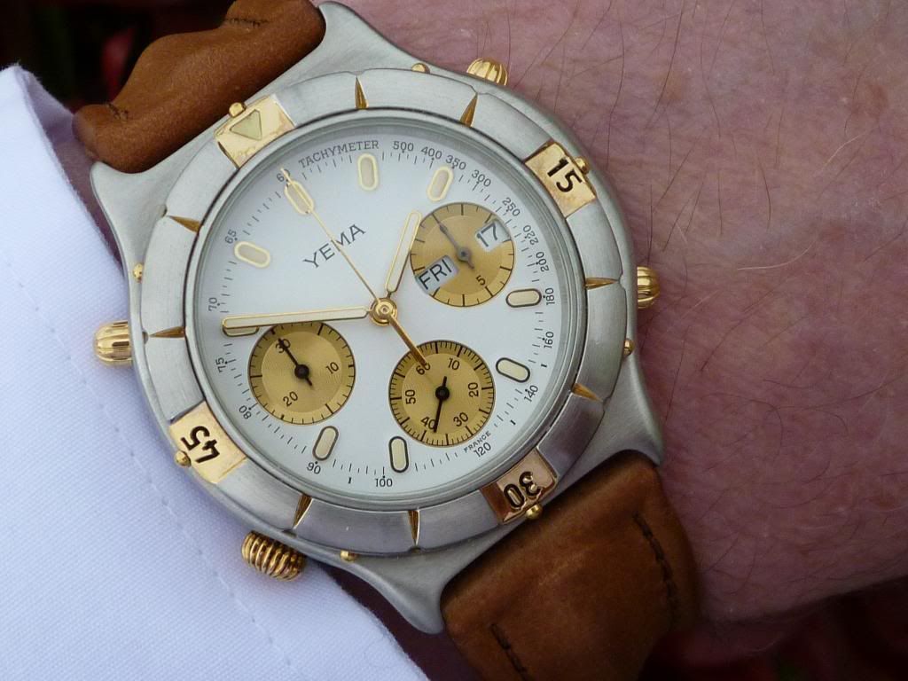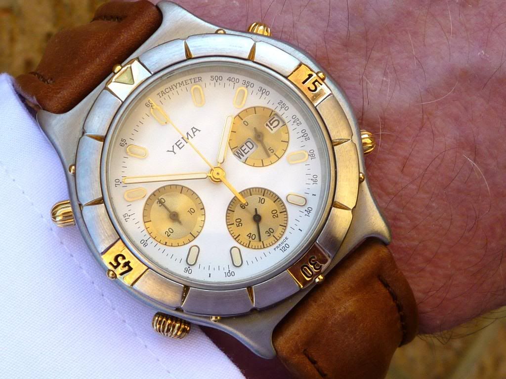 Yery nice Simon. Better late than never, here's another marginally better shot of my recently acquired Yema N8 OP896 'Pseudo Plongeur' .... This time with the correct day and date showing - and the alleged (non existant) chronograph 'fault' fixed. See this thread.