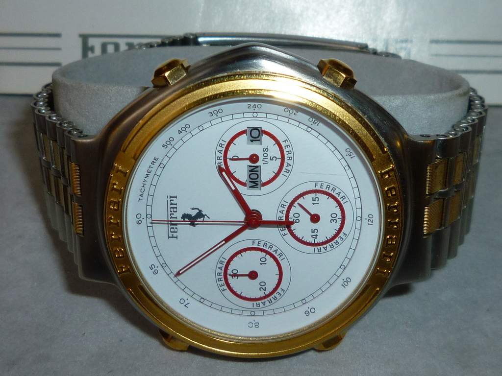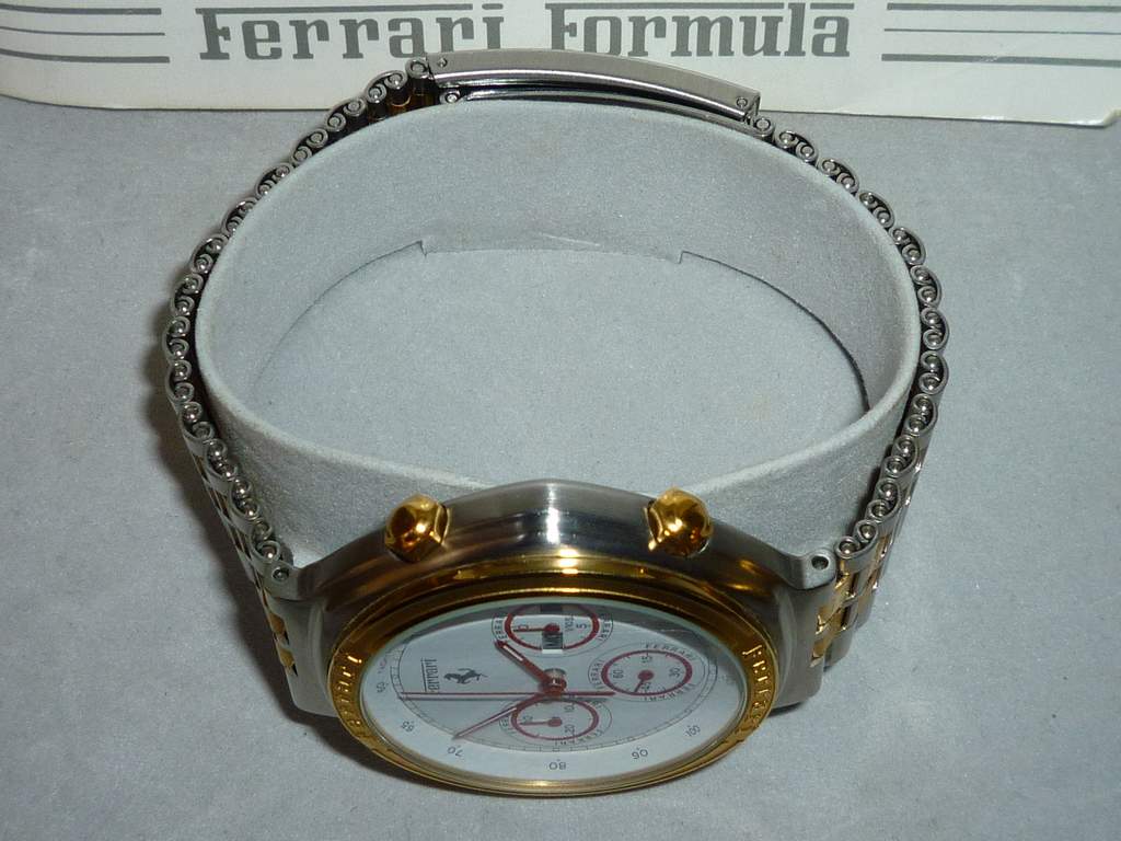 It was listed a week or so ago, by a German eBay seller, as a 7-day auction with an opening bid price of 1 Euro and no reserve. It's supposed to be 'new and unworn', though that's not entirely borne out by the photos. One sentence in the description translates as: I offer the watch from one euro, maybe someone is still looking for a great Christmas present. http://www.ebay.co.uk/itm/164571420662 Cartier Ferrari Uhr Formula Chronograph