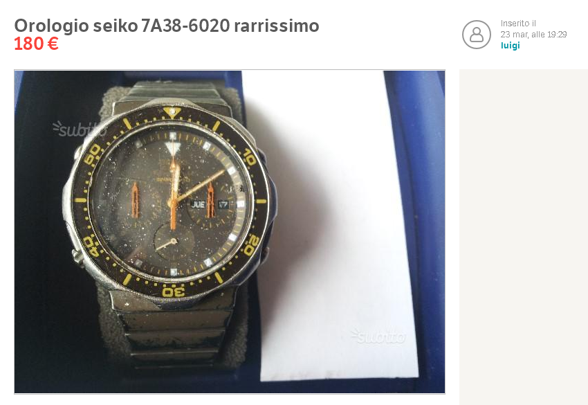 Another allegedly NOS brown coated 7A38-6020 'Diver' surfaced on eBay Italy earlier this evening. Note stated condition: Usato (rather than New with Tags) - An item that has been previously worn. http://www.ebay.co.uk/itm/271838420016
