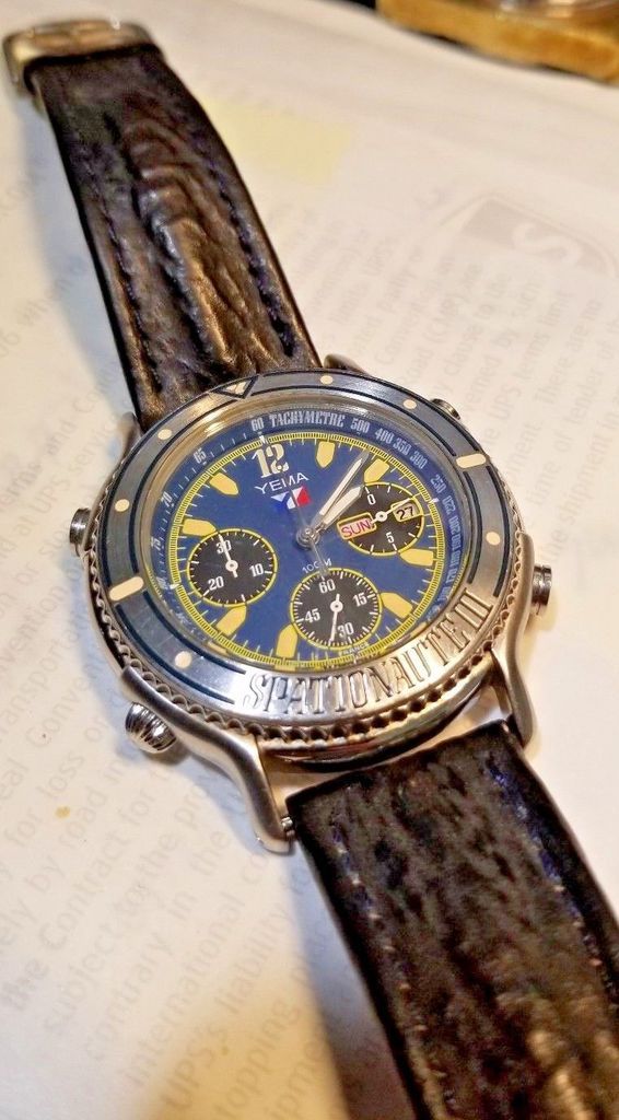 The laughably over-priced eBay listing for a Yema Spationaute III, by would-be profiteering US re-seller expertswatches, which I'd been eagerly anticipating (if only to take the mickey) materialized overnight - a little later than expected. Given his ludicrous mark-up on the ex-watchaddict412 Yema N81W63, it wasn't quite a stupidly high as I'd expected - 'only' $500 (plus an additional $175 in GSP charges for anybody foolish enough). The reason soon becomes apparent. This isn't, as I'd wrongly assumed another shopsoiled 'NOS' Yema from watchaddict412. But it is another Spationaute III which has previously featured in this thread. http://www.ebay.co.uk/itm/223080728317