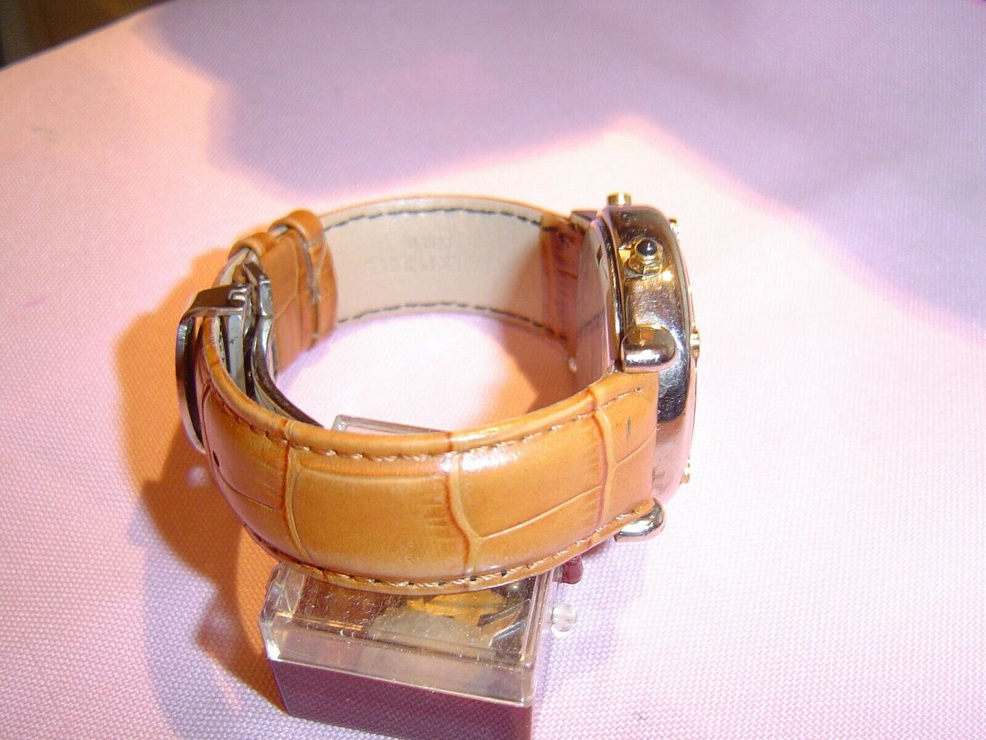 Vintage Gents KAMATZ Paris Quartz Chronograph Day/Date 15 Jewels Wrist Watch. In great condition. Brown leather band. New battery and running. Lug size 20 mm. Case is stainless steel. Case # 517000. Made in France. 3- push buttons. 1- lock down crown at 7 o'clock. rotating bezel. Case size 45 x 45 mm. I ACCEPT PAY PAL | |