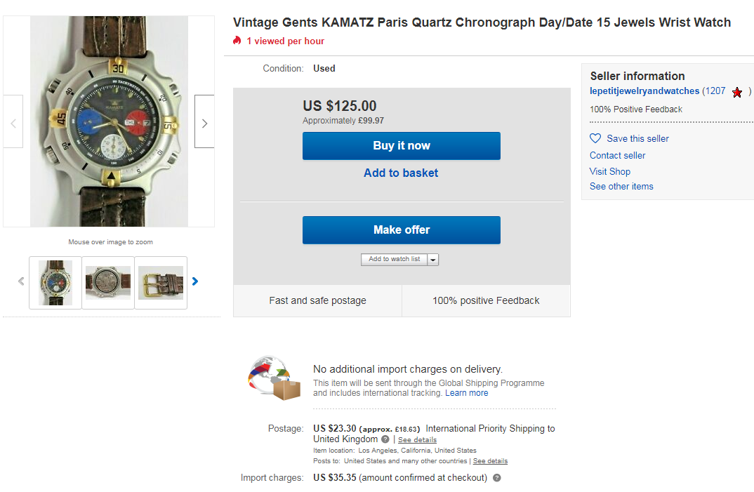 I can't stand the "make offer" mention, it is just ridiculous. And usually the seller is out of his mind. The seller above is an excellent example. I've contacted him and made a "ridiculous offer" for both N8. He claimed that a professional watchmaker offered him 1,300€ for the Spationaute III only !!! I tried to explain that it is probably a scam, but you know once they're convinced to own a rare jewel, they can't see how inconsistant is it. So he basically told me that I did not know what I was talking about. OK man, have fun with your scammer. | |