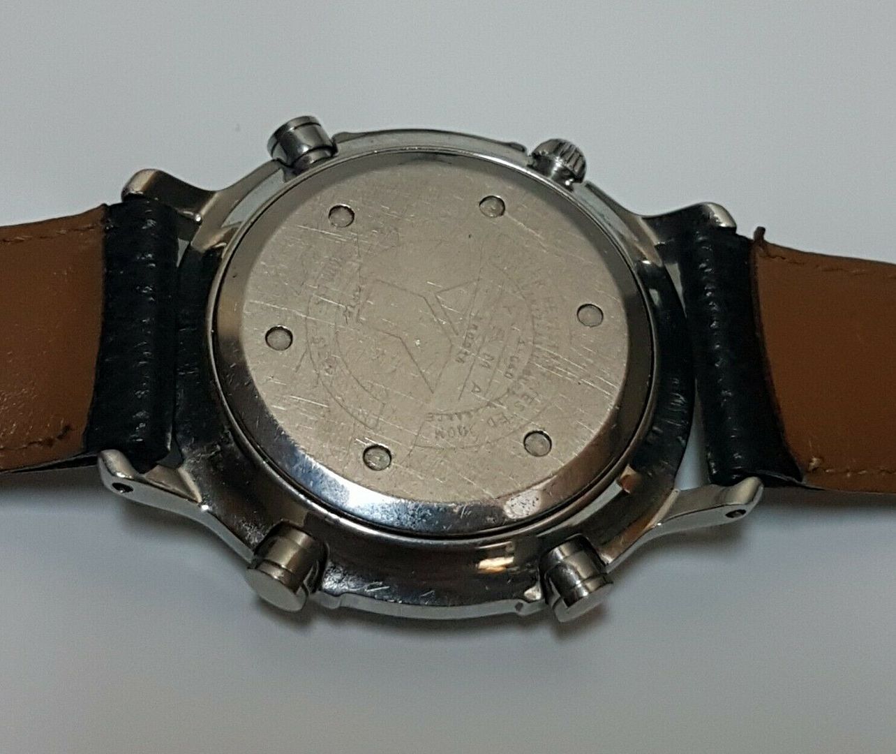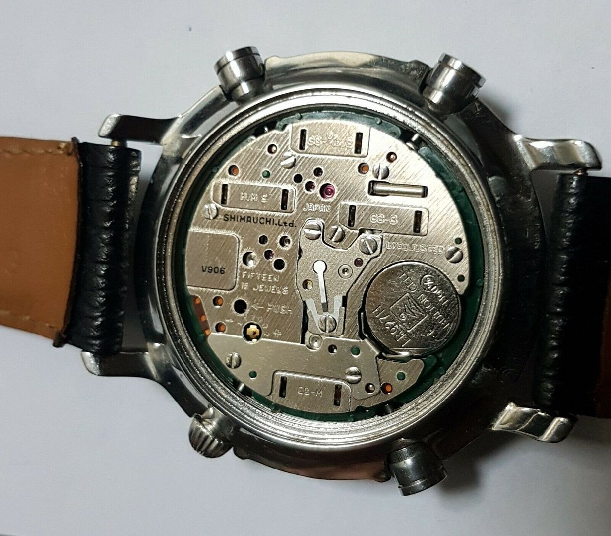 Je mets en vente cet intéressant et peu fréquent chronographe quartz Yema Flygraf N8. Cette montre a été produite entre 1989 et 1994 pendant la période ou Yema faisait parti du groupe Seiko. La montre est en dans un état correct. Commençons par le boitier acier. Il comporte de légères traces de vie, mais il est vraiment dans un bon état. Visibles sur les photos des griffures, rayures sont présentes sur le fond de boite, traces typiques liées à l'ouverture du boitier (visibles sur les photos). Peu ou pas de traces sur le remontoir ni sur les boutons poussoirs. À préciser des griffures sur la corne haute gauche. Côté mécanique je ne connais pas la date de dernière révision, ni celle du dernier changement de pile. mais la montre fonctionne, ainsi que toutes les fonctions du chronomètre. À noter le réglage rapide du jour. Couronne visée, et deux positions de réglage, une pour l'heure et une pour le jour comme je viens de le mentionner. Il s'agit d'un mouvement quartz d'origine Seiko 7A38. Aucun choc sur la lunette, toutes les dents sont là. Visuellement les couleurs ont connu une très légère décoloration mais elle est en super état. Le cadran est lui aussi super propre et les aiguilles "blanchies" sont dans la version "cream lume", aussi disponible en vert. Moi je préfère cette version. Le verre n'est pas fendu mais affiche quelques rayures (visibles en photo). Une montre originale pour un prix raisonnable, idéale pour les passionné(e)s de la marque Yema. Boitier acier - All stainless steel case. Comme souvent sur les montres anciennes, l’étanchéité n'est pas garantie ! Dimensions : diamètre 42,80 mm hors couronne, corne à corne 49,30 mm, entre cornes 22 mm. Bracelet générique en cuir ZRC. La montre sera vendue en l'état, les photos font parti de la description. J'essaye d'être le plus précis possible dans la description. N'HÉSITEZ PAS À FAIRE UNE OFFRE DIRECTE ! Livraison Colissimo avec signature valeur déclarée France uniquement, règlement Paypal uniquement. Pas de retour. Pas de négociation possible sur l'envoi de la montre. Elle sera envoyée en colis, bien protégée et pas dans une enveloppe ! International bidders please contact me before bidding, thank you. N'hésitez pas à regarder mes autres objets en vente. | |