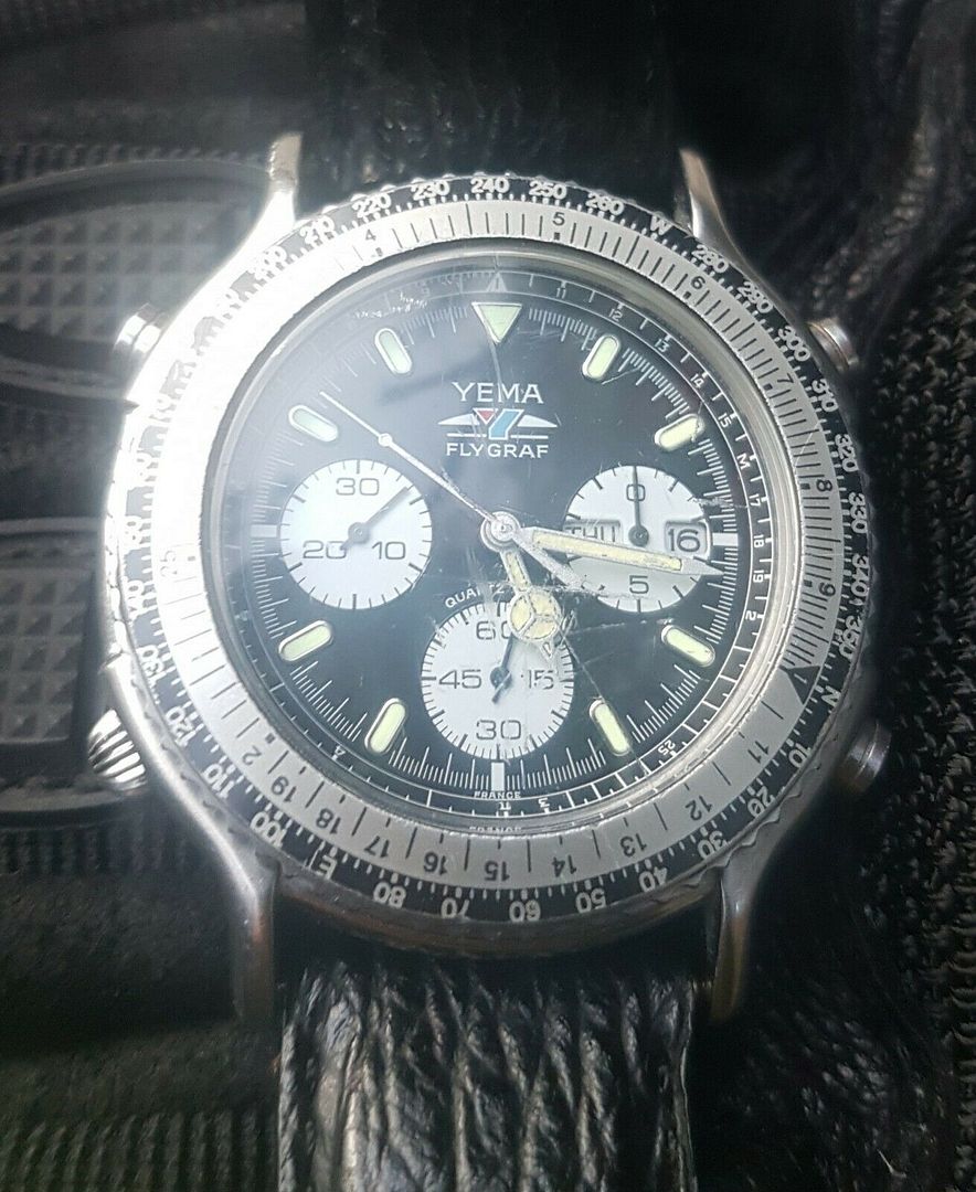 The seller has only uploaded the one photo, so it's difficult to gauge the true overall condition. The bezel appears to be lightly scuffed and there are a couple of light scratches on the crystal. The navy blue shark strap looks very much like the original Yema fitment. Regardless, there's no way it's worth anything like 500 Euros. The second, fitted with a non-original stainless bracelet, was listed at the weekend: https://www.leboncoin.fr/montres_bijoux/1722173460.htm