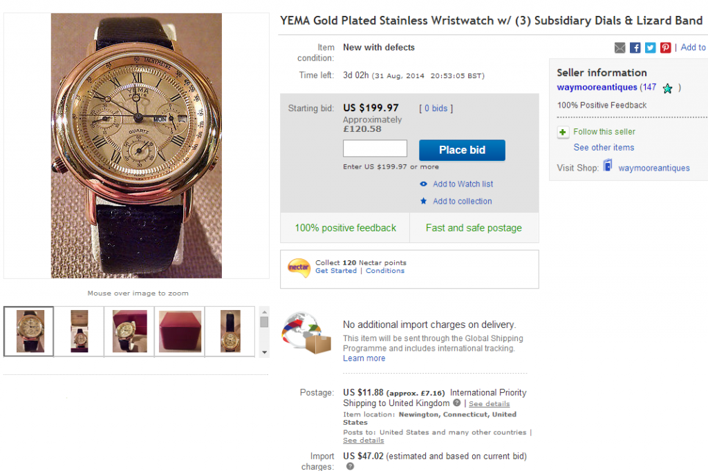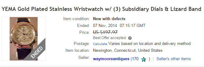 Speaking of French eBay sellers and their laughably over-optimistic asking prices, earlier this evening, I spotted this .... Yema N81W53 listed by one with zero feedback, apparently a good command of English - and absolutely no idea of their value. http://www.ebay.co.uk/itm/281500830710