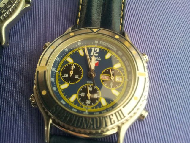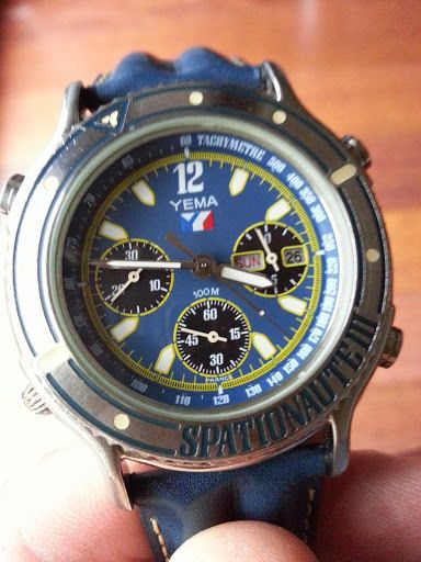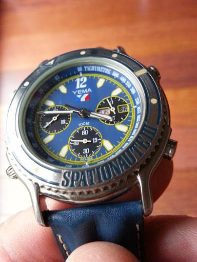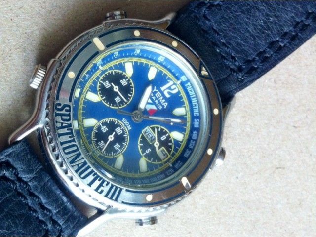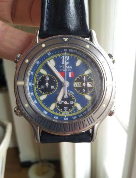 I sometimes feel a tinge of sadness when I see other collectors offering their watches for sale. If I'm not mistaken, the seller 'Yema' on LeBonCoin.fr is the same person 'Jecko' (Jean-Christophe) of Forum à Montres, who wrote so much about the history of Spationautes. Yema Spationaute III NOS ![]() ![]() ![]() Yema - Mise en ligne le 12 octobre à 19:27. Prix : 350 € Ville : Paris Code postal : 75017 Description : Très belle Yema Spationaute III NOS Pilote neuve Bracelet bleu neuf Cette Montre n'est pas un contrefaçon. Instantly recognisable (to me) by that 'double jonc' ZRC leather strap - and not exactly in NOS condition. Méchant, Jecko. | |
