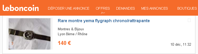At the risk of repeating myself (again) .... Hardly worth mentioning really, as it's already had umpteen mentions in this thread before (just search on 'scabby Flygraf') .... But it's back on LeBonCoin once again, as of the weekend - same photos as before; the asking price now 140 Euros. http://www.leboncoin.fr/montres_bijoux/867066060.htm?ca=1_s