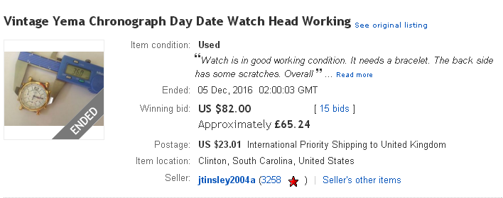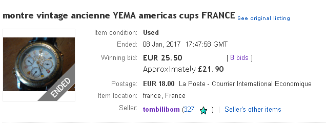 That French eBay listing, by seller tombilibom, for the Yema N71Z396 Americas Cup 'spares or repairs' watch ended earlier this evening, selling for 25.50 Euros after 8 bids. http://www.ebay.co.uk/itm/222360914450
