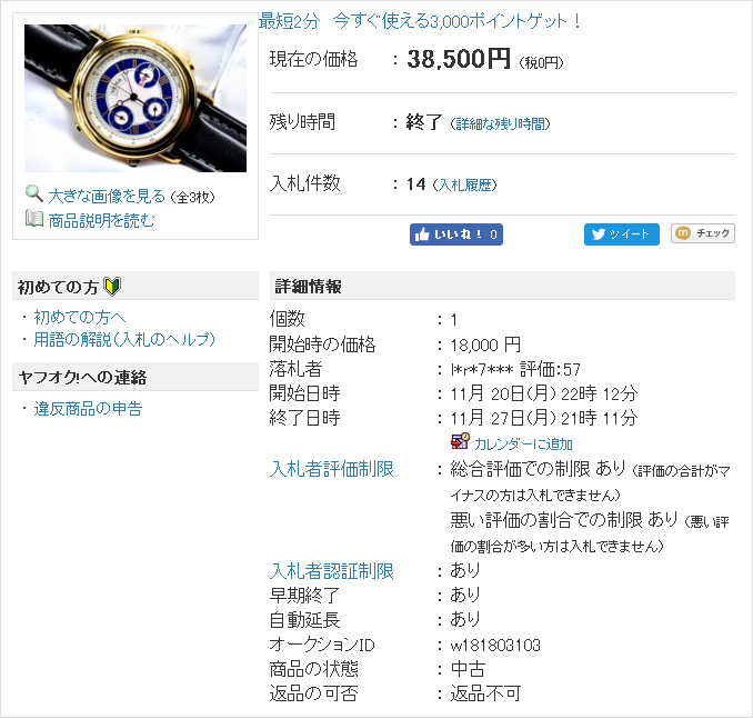 I have to report a mildly bemusing eventual outcome to that Yahoo Japan listing for a Yema N81W63.