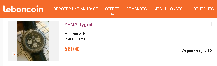 Speaking of risible 'pie-in-the-sky' asking prices .... Seeing that Yema N8 Flygraf, relisted on LeBonCoin yet again this lunchtime @ the same 580 Euros, for the nth time ....