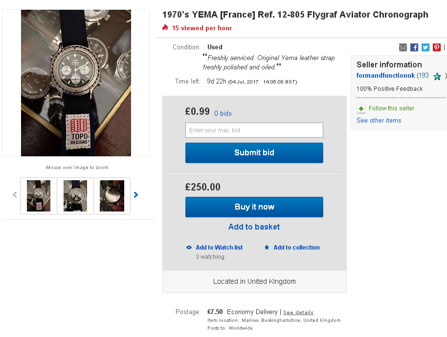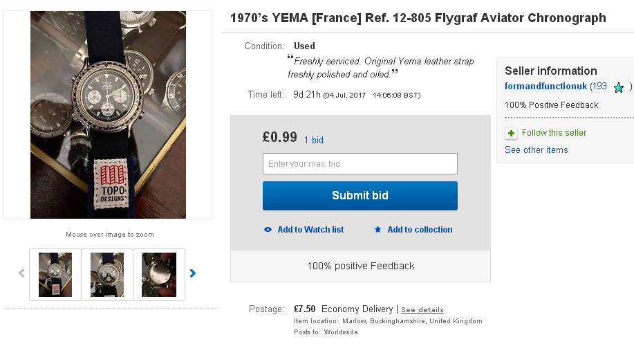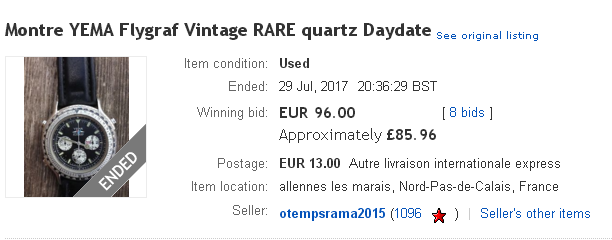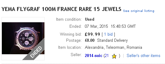 The UK eBay seller re-listed his Yema N8 Flygraf a couple of hours ago. This time as a low start auction, with an opening bid price of