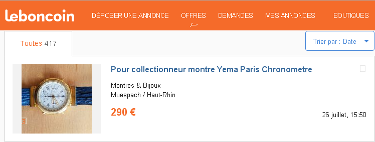 http://www.leboncoin.fr/montres_bijoux/1167219560.htm?ca=1_s Pour collectionneur montre Yema Paris Chronometre