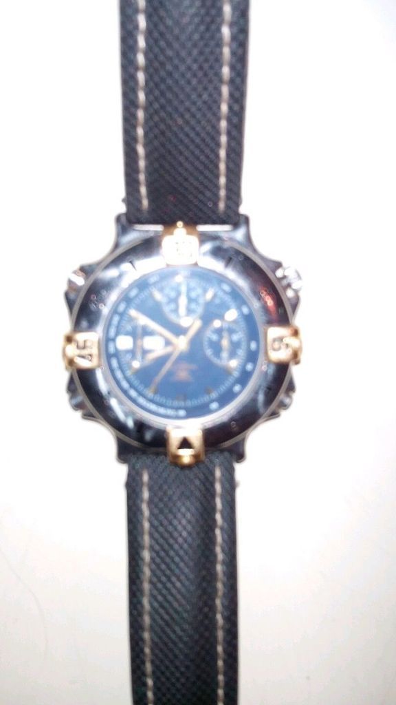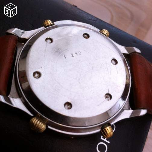 Montre YEMA sponsor de l'équipe de france pour l'America's cup de 1992. Edition spéciale. Très bon Etat général. Le boitier est en très bon état, pas de rayures grossières. Une usure naturelle pour une montre de 20 ans. Le bracelet est en forme du poignet, la montre a été souvent portée, le cuir est usée mais dans un état général correcte. !---Pile à Changer---! Me contacter pour plus de photos ou d'informations | |
