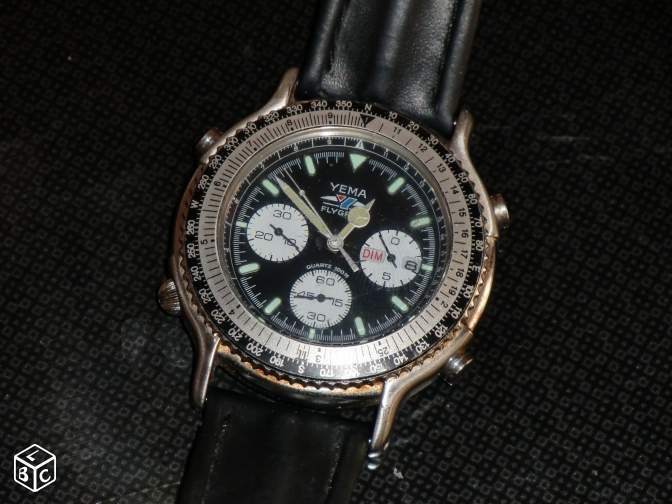 Here's a decent looking example of a Yema N8 Flygraf, complete with original strap that was listed on LeBonCoin earlier this afternoon. Unfortunately, the deluded French seller appears to be under the impression it's worth up to 500 Euros. http://www.leboncoin.fr/montres_bijoux/879606969.htm?ca=1_s Montre Yema Flygraf chronographe ou echange
