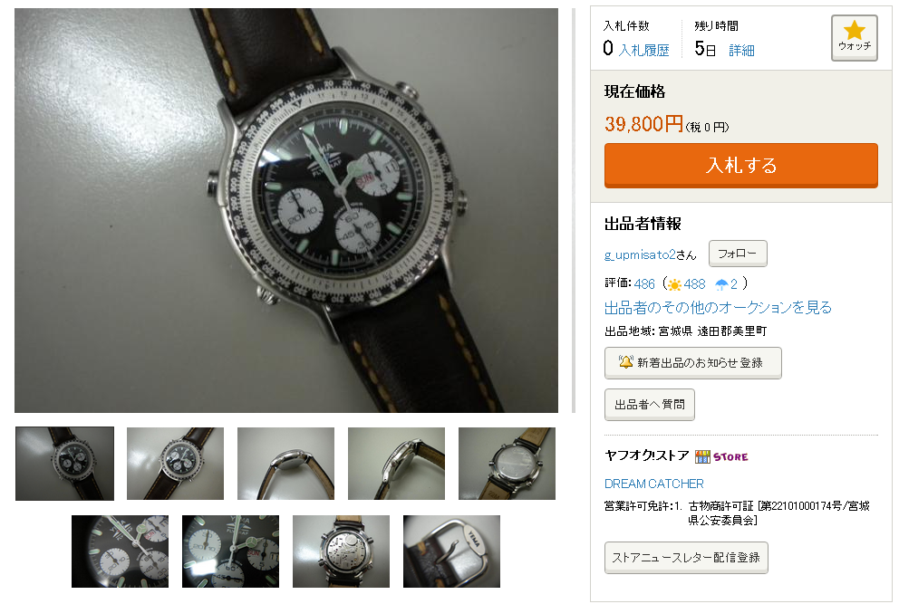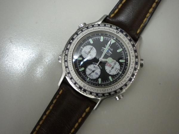 Normal operation goods In particular notation is not but contents are Seiko 7A38. Screwed crown It is including tax. Contact for business trip, shipping etc will be night. Payment simple settlement, Iwate. (I wait ?) Shipping is letter pack plus (¥ 510) only. I need your help by a no claim. To that, I'd add: The dial and hands and all important lume look fresh and clean. The slight apparent shortening of the markings of the bezel's inner logarithmic scale may simply be due to normal rubbing wear under a cuff, or it might indicate that the hesalite crystal has been polished in situ. Although fitted with the original Yema wire loop buckle, the leather strap is a replacement (made by RIOS). | |