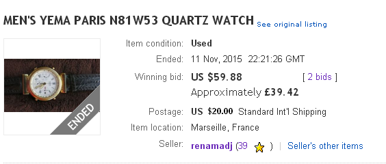 It's sometimes surprising the difference that 12 months makes. Whereas some eBay sellers will carry on re-listing their over-priced offerings at the same 'pie-in-the-sky' asking prices ad nauseam .... Occasionally you'll get the odd seller who gradually reduces their price to something 'sensible'. Though it may take them a while. I'd watched that Yema N81W53 being re-listed so many times I'd lost count - until the opening bid price came down to $55 last week. http://www.ebay.co.uk/itm/281848206529