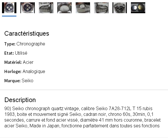 Incidentally it's also listed on the Belgian classified site www.2ememain.be. http://www.2ememain.be/386363694.html 90) Seiko chronograph quartz vintage, calibre Seiko 7A28-712