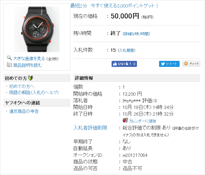 It sold for 50,000 Yen in a 7-day auction, which ended on 26th October. Not only was the date slightly too early for it to have been part of the Italian NOS hoarde - eBay seller albysurf1995's first two listings ended on 24th October, but this one wasn't actually NOS - just in very good used condition.