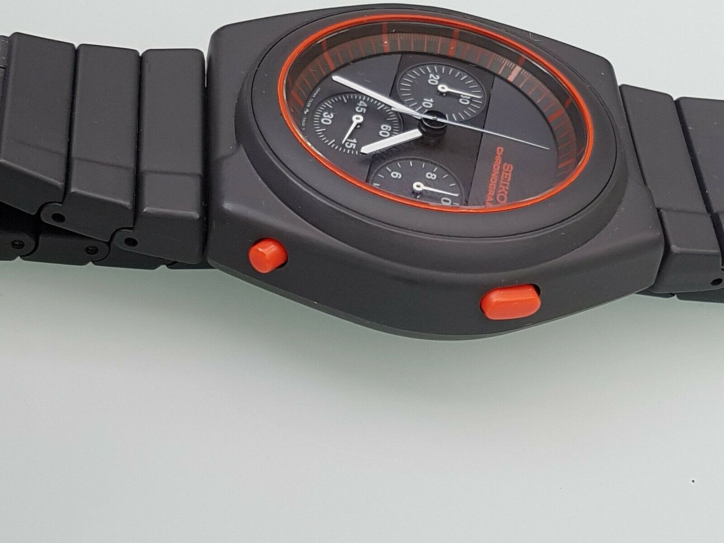 For sale is this rare 1986 Seiko Giugiaro designed 7A28-7A00 SBBJ005 Red Bezel Ring NOS Condition Amazing Watch! As you can see from the photos this is a NOS (New old stock) watch from 33 years ago. It is a time traveller! This Giugario designed watch, with a cockpit style for the sub-registers. The dial is rotated slightly to make it readable with the wearers hands resting on the handlebars of a bike, with distinctive white watch hands, and the strap is unmarked. A small step runs from the watch case across the first 3 links of the strap. The watch comes on its full 20 link bracelet. Like other Giugiaro-designed watches, the Seiko 7A28-7A00 sports a unique look. It comes with an offset dial with red or yellow ring surrounding the crystal and plastic buttons or chrono pushers and a plastic / titanium case resin bracelet.On the gray dial rests three sub dials located at the 3, 6, and 9 o’clock marks. Hours and minutes are indicated by red markers and white hands. “SEIKO”and “CHRONOGRAPH” can be seen at the 12 o’clock position. Once again this watch is basically brand new. Good luck! There are a couple of things I'd be wary of, personally. The seller states his location as being: Boronia, VIC, Australia. Boronia is a suburb of Melbourne, home of that deranged Australian ex-eBayer aussiewatches. This eBay account was created on 21st March 2019, but the user f1modelcars has already changed his ID twice !!