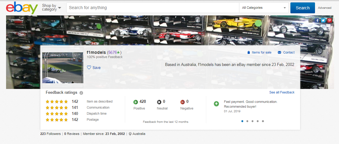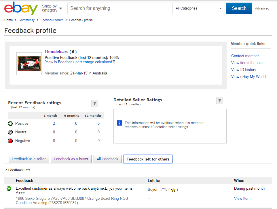 I humbly apologise for taking another 7Axx model specific thread off topic, but these things do need flagging up unfortunately. This morning I looked at the above listing for a 7A28-7A00 SBBJ005 again and noticed that the new Australian eBay seller f1modelcars had picked up another two 'positive' feedbacks since yesterday. Except that they're not exactly 'positive', in the true sense of the word. (eBay sellers can no longer leave negative feedback for buyers - they can only 'pick their words').