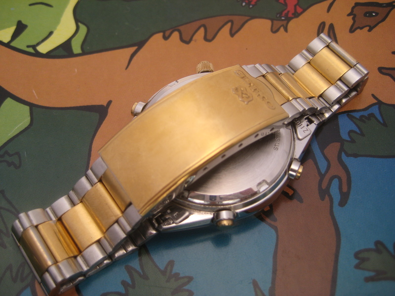 The watch's bezel, pushers and (extremely well-worn) crown have clearly all been re-plated. The watch case has obviously been polished, because the swage lines on the sides aren't as sharp as they should be. As the seller states in his description, the watch is still fitted with the 'original' correct Seiko p/n Z1162C bracelet (albeit a rather short one) - but what he conveniently omits to mention is that it's been completely stripped of its gold plating. Here's how a 7A38-7069 should look (and this one did once).
