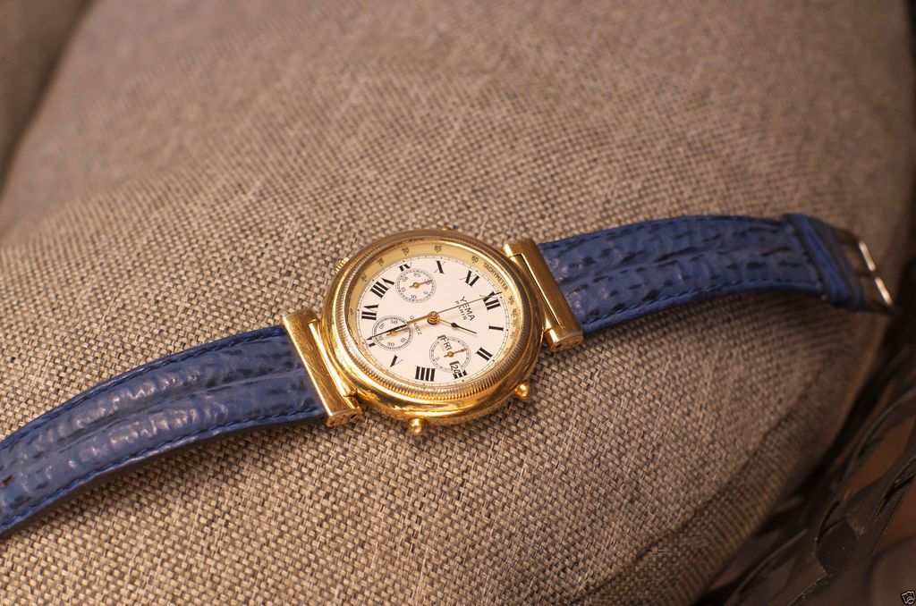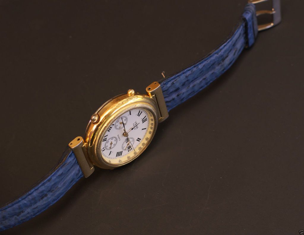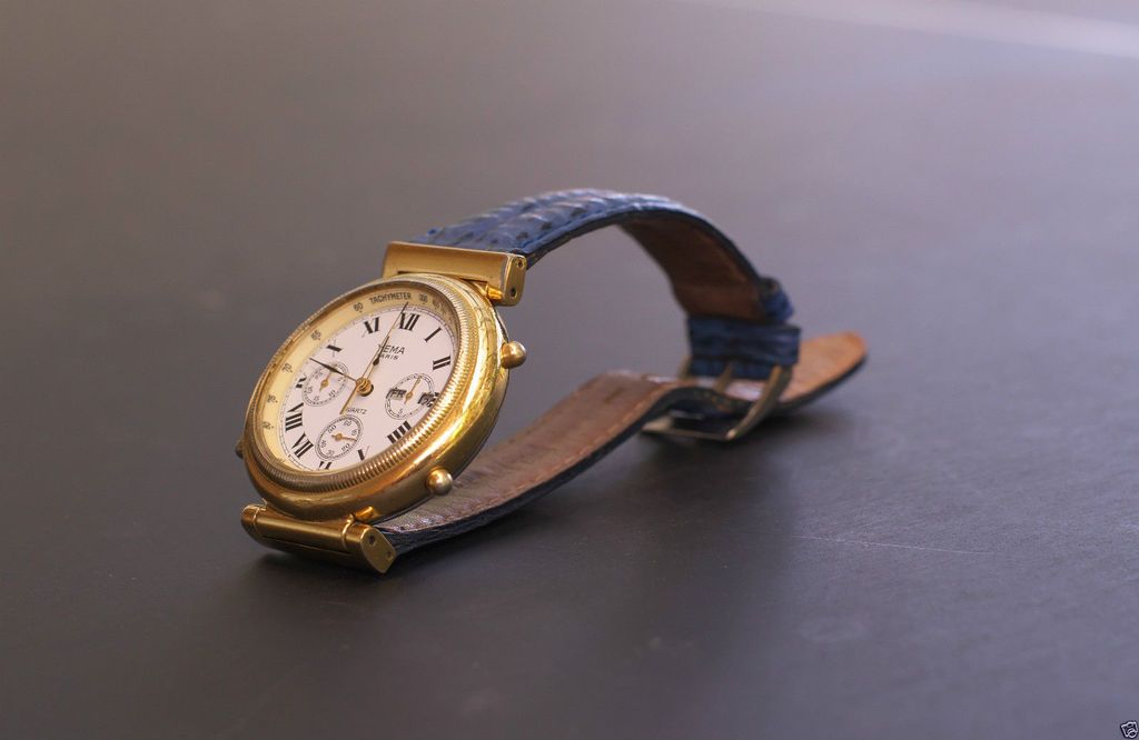 VINTAGE APPROX 1988 SEIKO OWNED RARE YEMA CHRONOGRAPH DAY/DATE ROMAN NUMERALS , BY SEIKO 7A38 MOVEMENT WITH DEFECT, ALL CHRONOGRAPH AND TIME FUNCTIONS RESET PERFECTLY INCLUDING THE DATE BUT THE DAY DOES NOT FULLY TURN OVER PROPERLY, CRYSTAL IS CLEAR AND CLEAN ,WATCH BACK SHOWS SCRATHES FROM PREVIOUS HAM FISTED OWNER/S OTHERWISE JUST NORMAL WEAR FOR A WATCH USED REGULARLY AS A DAILY WEARER . PLEASE REFER TO PHOTOS. FACE MEASURES APPROX 40MM ACROSS FROM PUSHER TO CROWN INCLUDED. THIS WATCH USES THE FAMOUS SEIKO 7A38 MOVEMENT, THE FIRST EVER QUARTZ ANALOGUE MOVEMENT. WATERPROOF CAN NOT BE GUARANTEED ,COMES WITH A WATERPROOF GENUINE LEATHER BAND ,POSSIBLY ORIGINAL. PLEASE REFER TO THE PHOTOS AS THESE FORM PART OF THE DESCRIPTION. MORE INFORMATION AND INSTRUCTION MANUAL CAN BE FOUND IN LINK . SOLD "AS IS" NO RETURNS . FREE POSTAGE WITH TRACKING NUMBER THANKS FOR LOOKING Here's a full transcript of my original first post, dated 24th February; content now moved from the Yema N8 spotted thread: Difficult to miss this one, with the first two words of the title being 'Seiko 7A38'. Ironic though, because a broken plastic day / date changeover wheel, like this watch is apparently suffering from is the Achilles Heel of the Seiko 7A38A movement - just as it is for its less frequently credited Shimauchi Ltd. V906 branded sibling. But I digress. This dressy Yema was listed in the early hours of this morning by an Australian eBay seller, who's clearly got something against Poms and Krauts, because he's excluded both UK and Germany from his ship to locations. Do I care ? You'll note there's no mention of the Yema N8 model number in either his title or description. It's a N81W53. Strange, because if you zoom in on the photos, you'll see this watch is fitted with the wrong case-back off its sister model, the N81W43 - one that's been typically graunched by 'some other ham-fisted' oaf. --------------------------------------------------------------------------------------------------------------------------------------------------------------------- That's where I fell down on the job. Badly. | |