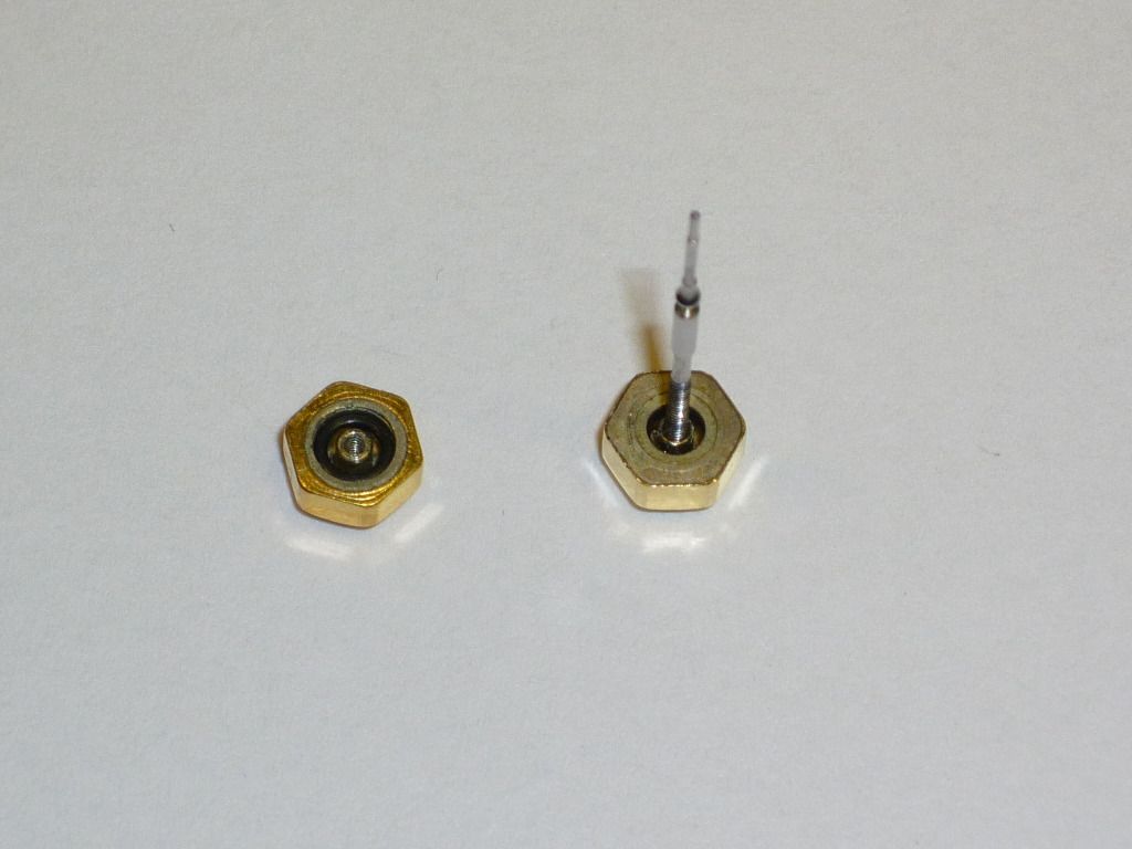 Although Philippe has eluded to mention them in his description, the non-original replacement pushers fitted at 2 o'clock and 4 o'clock should be pretty obvious to most people. But what about the crown ? When I was working on Nathan's two Cartier Ferrari Formula's (and examining the 'spare parts' he'd been sold by German eBay seller Srilanka20082912), I discovered that there were two types of crown used, depending on the diameter of the crown tube fitted to the case: