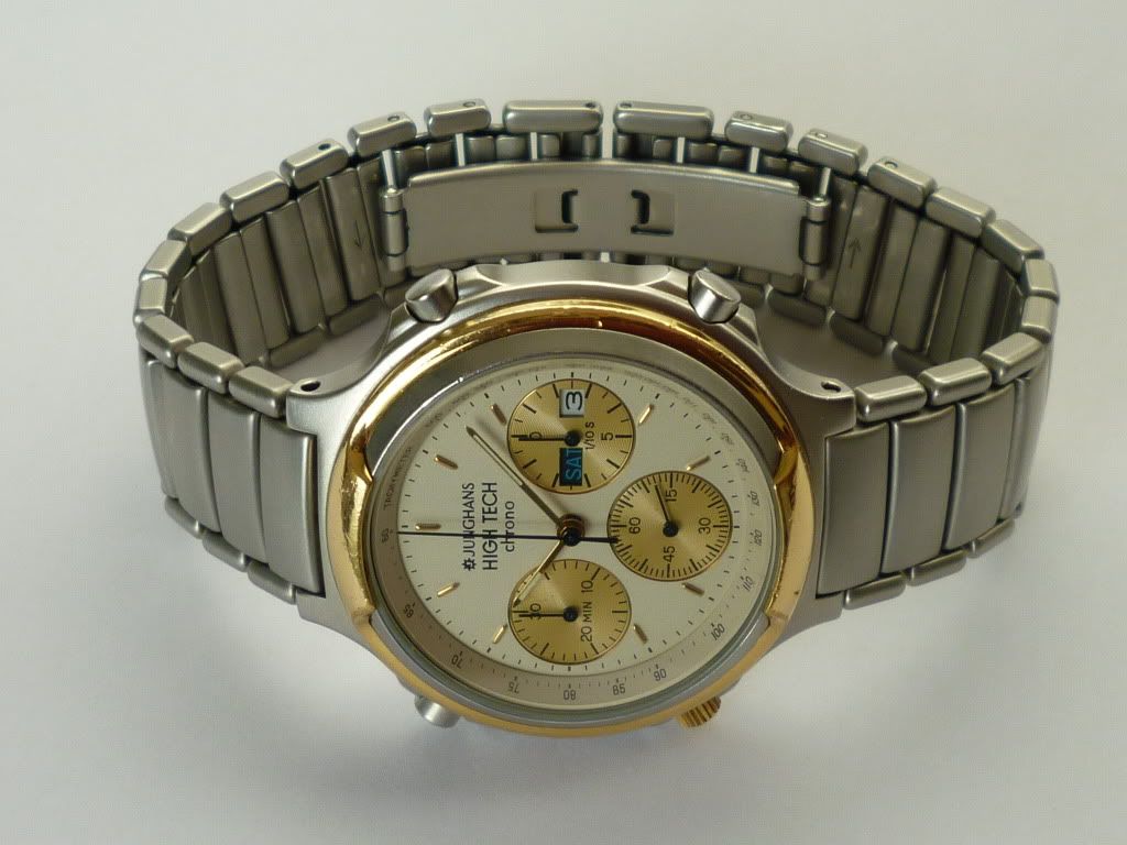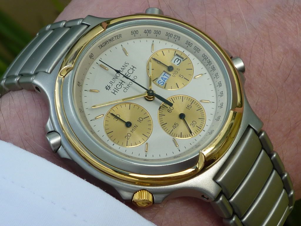 An unusual one, and I suspect of limited appeal to most, a Junghans High Tech 24/4610 '7A38' listed on eBay Germany, yesterday: http://www.ebay.de/itm/230778783590 JUNGHANS HIGH TECH HERREN CHRONOGRAPH BICOLOR EDELSTAHL UHR + DAY&DATE + TACHYM.