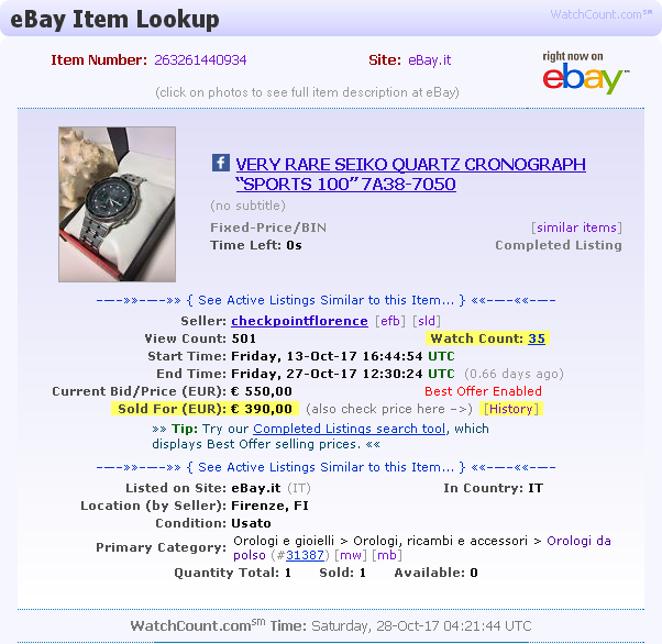 But as shown by WatchCount.com's Look-up tool against an offer of 390 Euros.