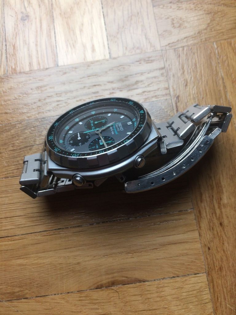 This well worn example of a 7A38-7050 was listed late yesterday evening by a Serbian eBay seller, with an over-optimistic opening bid price of $380. Evident from the seller's photos, the Seiko p/n Z1148S bracelet is typically badly worn and stretched. http://www.ebay.co.uk/itm/272877169941