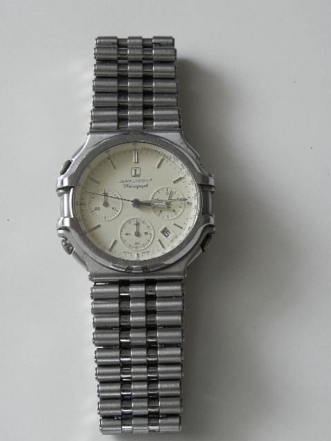 Mens watch from the 80s. Jean Lassale Chronograph, Thalassa. Used but good condition, it works perfectly, one knob missing. This is sure to replace. Unfortunately, I have no idea about these things and do not know what a collector would like to know. I answer questions like e-mail. Unfortunately 'we collectors' know that replacement pushers for these watches are like the proverbial rocking horse manure. | |