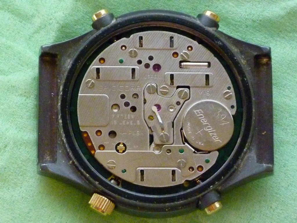It was (mis)described by the seller as 'absolut Neuwertig' (in the title) and Das Uhr funktioniert 100%ig einwandfrei. Which when it arrived today, to become the 5th Puma Y19 in my collection, turned out to be complete and utter bullsh!t ! It has some minor but otherwise acceptable cosmetic flaws, but it was also rather dirty and had a completely flat battery to boot. It arrived showing exactly the same time / day / date as in the eBay seller's listing photo !! These are a couple of photos I quickly rattled off, and emailed to the seller this afternoon, to vent my displeasure.