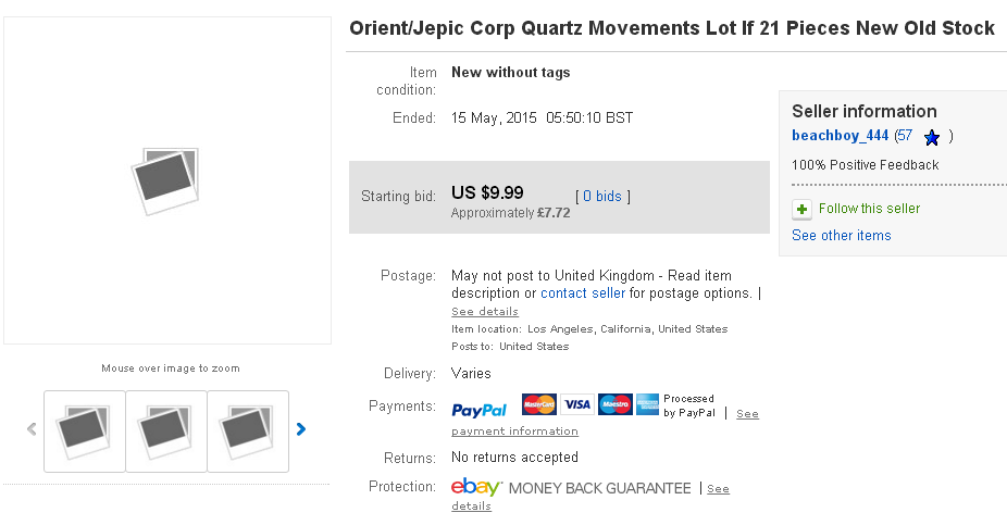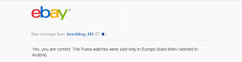 The irony being that apart from Y19301-70, the seller also included the words ORIENT, SEIKO and JEPIC in his listing title. So in all likelihood, he probably googled the Puma case-back model number and found this thread before listing it on eBay. | |