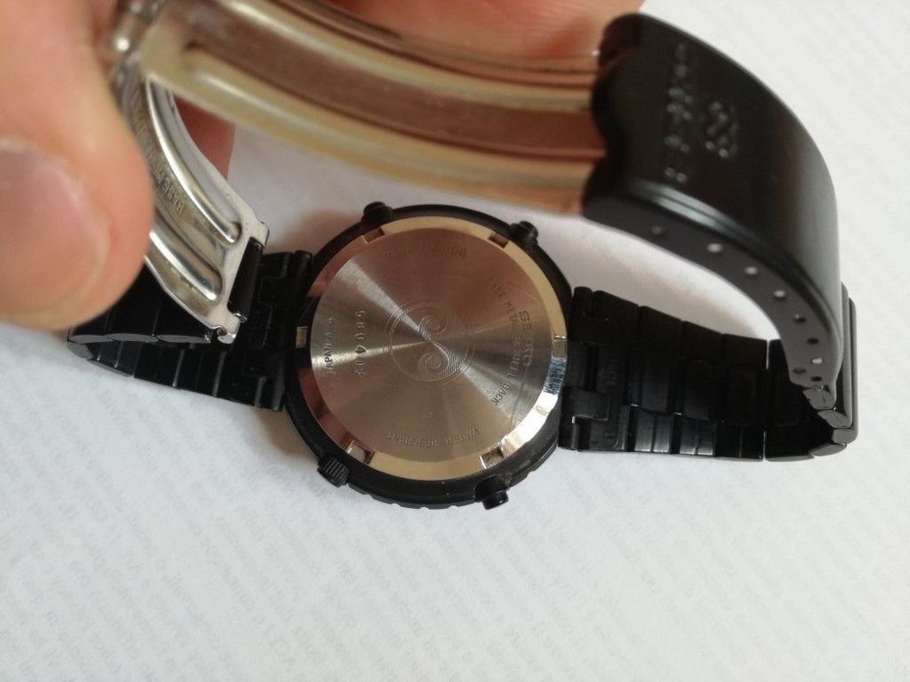 This 7A38-7140 was listed earlier this morning by a German eBay seller, with a 'pie-in-the-sky' Buy-it-Now price of 450 Euros, or the option to make an offer. Personally I'd be wary of this one - for reasons stated in a previous post. It may not be quite all it seems. This same 7A38-7140, case-back serial # 560452 was listed by Italian / German eBay seller contintasca in September last year. See my post on the previous page, dated September 15, 2017, which I won't quote here, simply because it is so long. I wrote then, that I strongly suspected the case and bracelet had been given a 'blow over' respray. If you check this seller's third photo, it's easy to spot the wear to the black chrome coating of the crown and pusher, which contrasts with the almost 'too perfect' matt black finish of the rest of the watch. http://www.ebay.co.uk/itm/223016450948