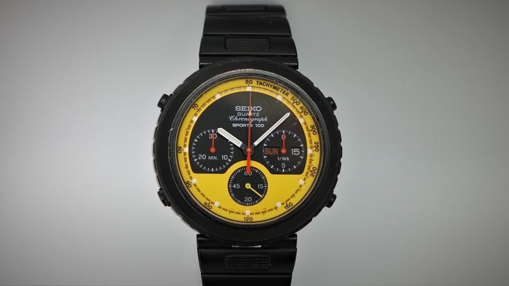 Rare Vintage Seiko Watch 7A38-7140 Quartz Sports 100 Chronograph 1985 Giugiaro Design Vintage Japan Watch JDM Perfect Original Condition - MINT Racing yellow / black All Orginal no Aftermarket Parts Perfect working Perfect condition. Looks like unworn No scratches on PVD bracelet or glass Shipping: Germany for free ...EU - 23 Euro - Worldwide - 48 Euro For the sake of age, no guarantee of waterproofness, Since I am a private seller I do not guarantee or warranty! Return not possible. More vintage watches follow! | |