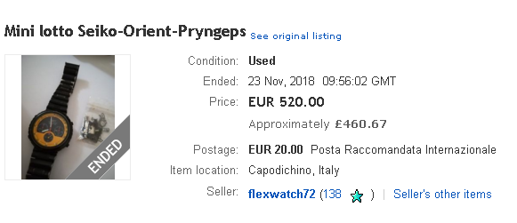 Sure enough, this same 7A38-7140, case-back s/n 580448 has previously featured in this thread - fairly recently too (it's detailed on the previous page). I may not have remembered the serial number, but had I been able to see it, I would certainly have recognised that deep scratch on the case-back, which was plainly visible in the previous Italian eBay seller's photo. It's conveniently hidden by a bright reflection in the current US seller's photo.